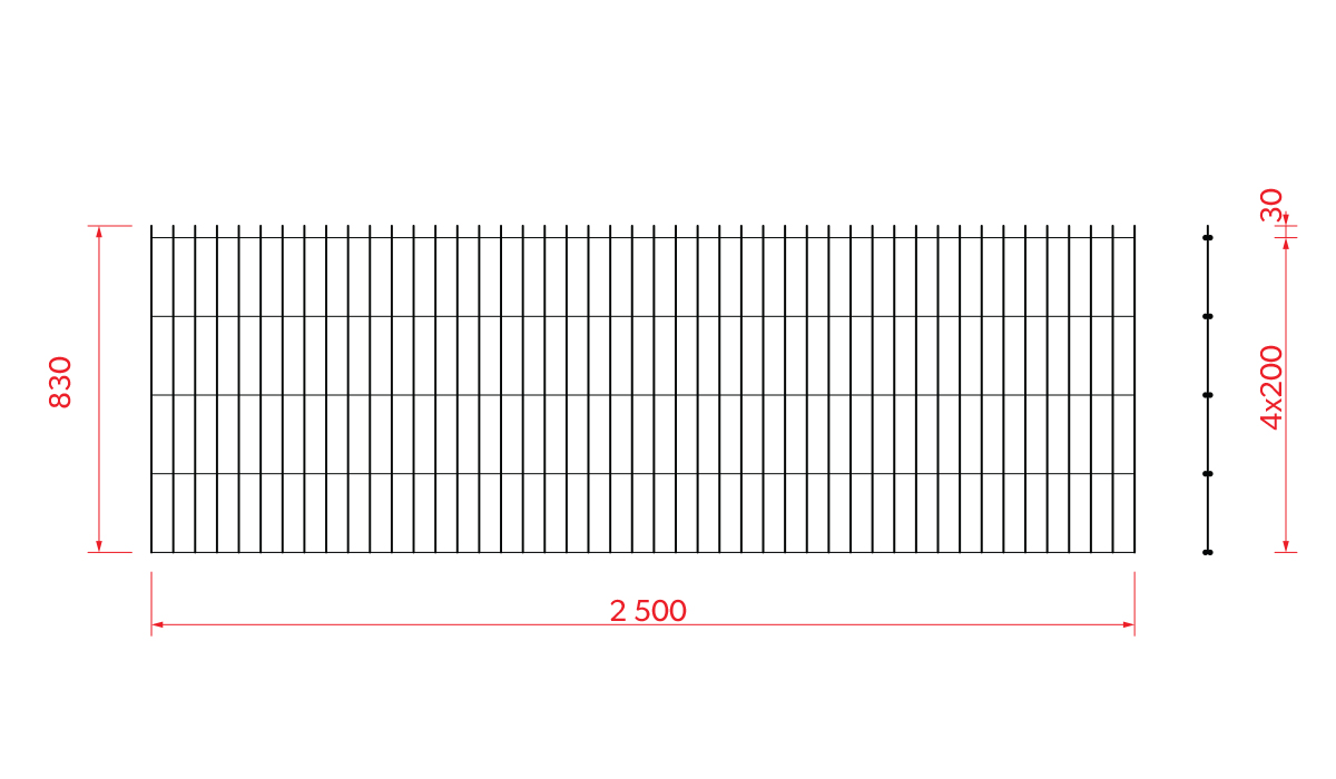 Svařovaný plotový panel N2D 2500x830mm D5/4/5mm antracit