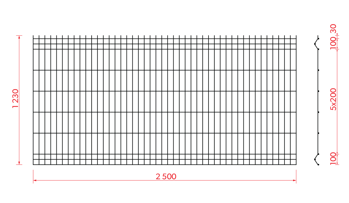 Svařované plotové panely se dodávají ve standardních velikostech o šířce 2500 mm a výšce 830 mm, 1030 mm, 1230 mm, 1530 mm, 1730 mm a 2030 mm. Tloušťka pozinkovaného a poplastovaného drátu pro 3D panel je 4 mm nebo 5mm.