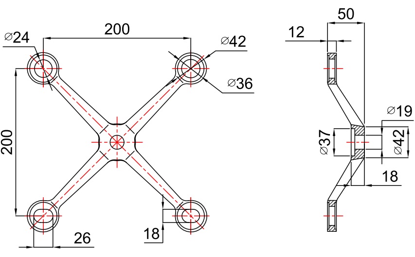 Přípustné axiální zatížení ramene (zatížení větrem) - 2100 N Radiální zatížení způsobené hmotností skla - 1000 N