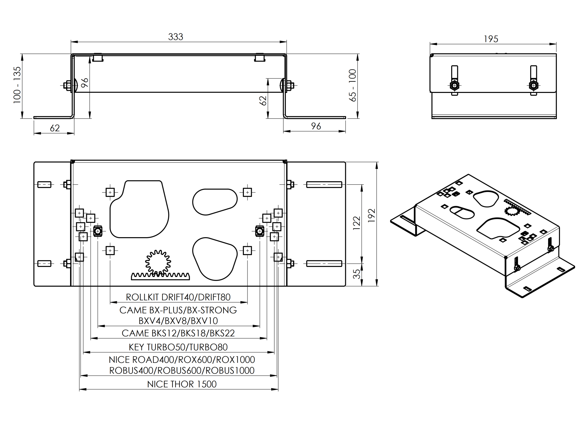 Univerzální podstavec pro pohony posuvných bran