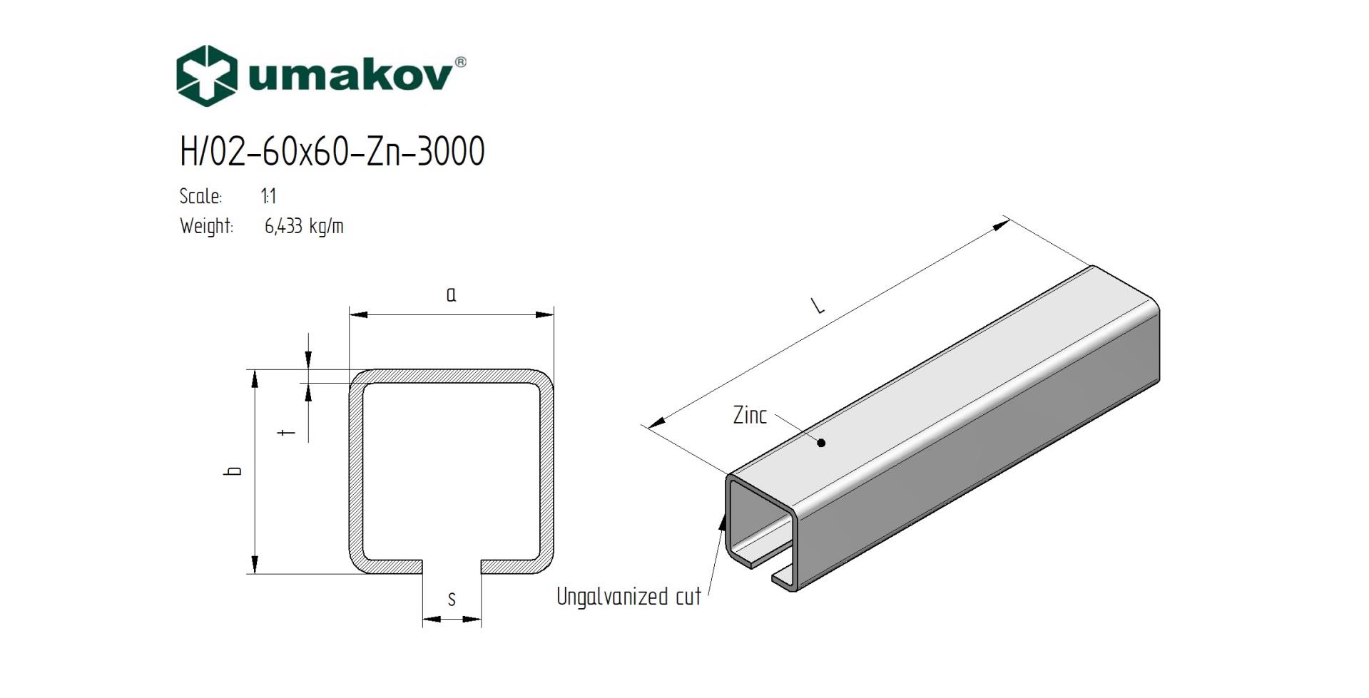 Materiál: Ocel, Povrchová úprava: Zinek, Značka: Umakov, L: 3000, a: 60, b: 60, s: 15, t: 4