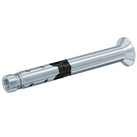 Je vysoko zátěžová plášťová kotva z galvanicky zinkované oceli se šroubem se zápustnou hlavou. Průvlečná montáž šetří čas. Při utahování šroubu je rozpěrný kužel vtahován do těla kotvy a zapře ho proti stěně vyvrtaného otvoru. Černý prstenec z plastu zabraňuje rozpěrné části v protočení a absorbuje posuv kotvy při utahování. Tím je kotvený předmět přitahován ke kotevnímu podkladu. Fischer kotva pro vysoké zátěže se šroubem se zápustnou hlavou je vhodná k upevnění zábradlí, schodišťových konstrukcí a žebříků do betonu s trhlinami i bez trhlin.