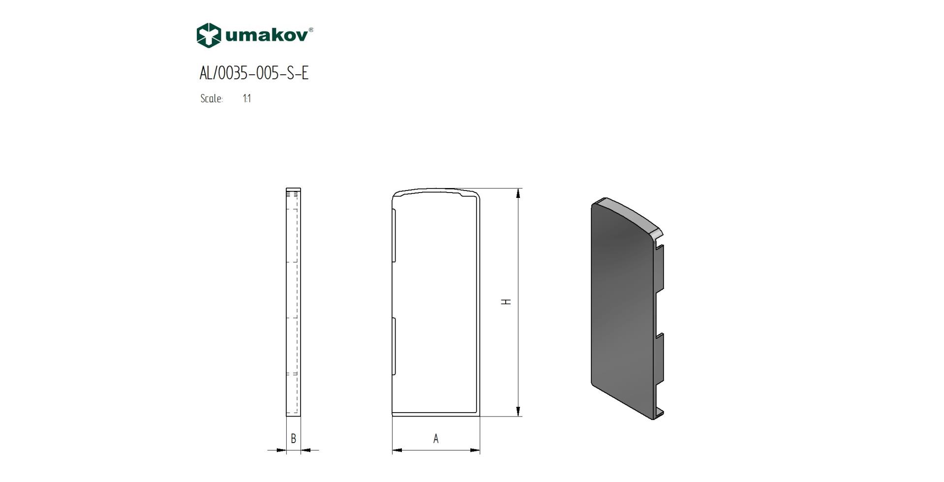 Záslepka pro profil AL/0005-5000-S-E, AL/0005-2500-S-E a AL/0005-1250-S-E. Povrchová úprava: Brus, Efekt: ELOX