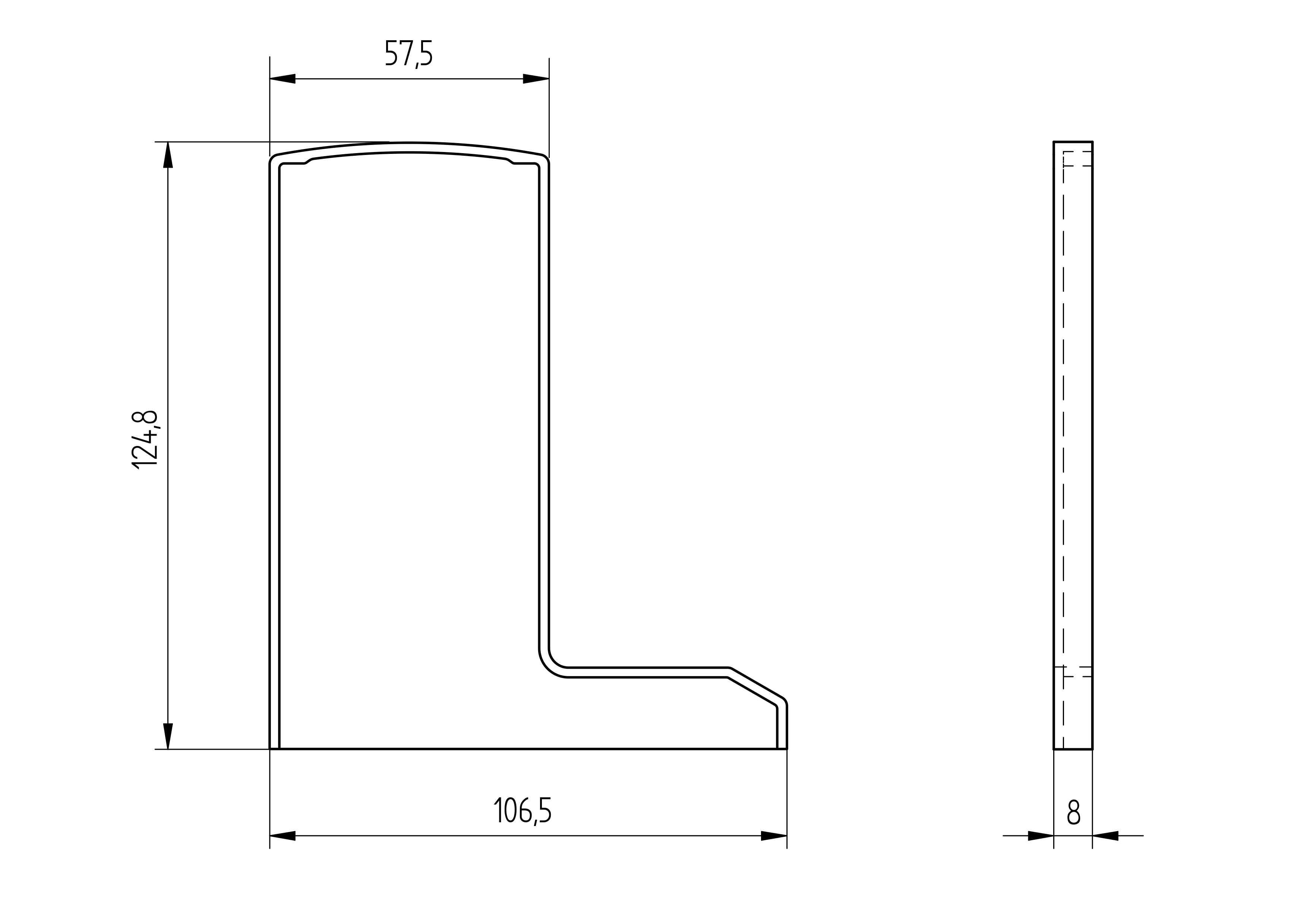 Záslepka (pravá strana) pro profil AL/0006-ECO-5000-S-E, AL/0006-ECO-6000-S-E a AL/0006-ECO-2500-S-E. Povrchová úprava: Brus, Efekt: ELOX