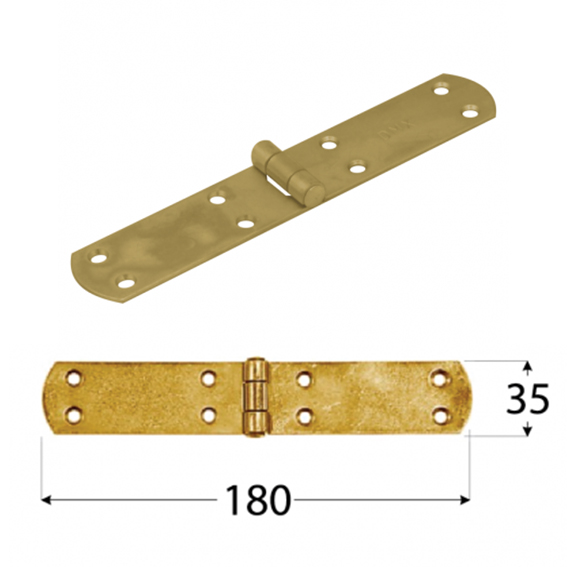 Výška závěsu - 33mm, šířka závěsu - 180mm, povrchová úprava - žlutý zinek.