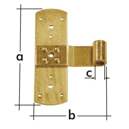 Výška závesu - 165mm, šírka závesu - 110mm, povrchová úprava - žltý zinok.