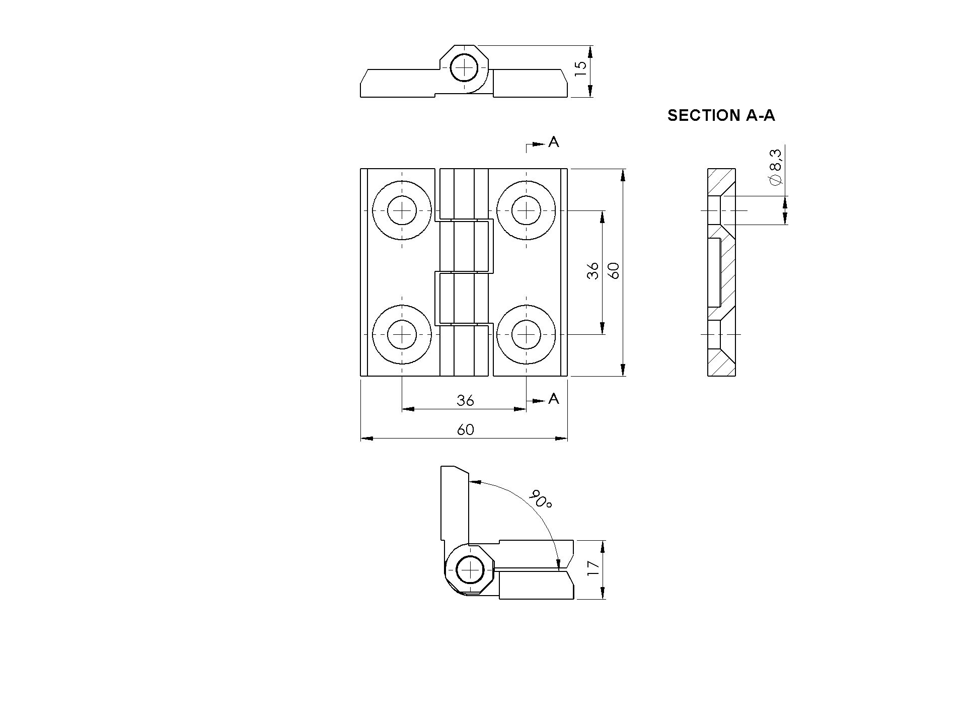 Závěs na brány INOX, AISI316, L=60mm
