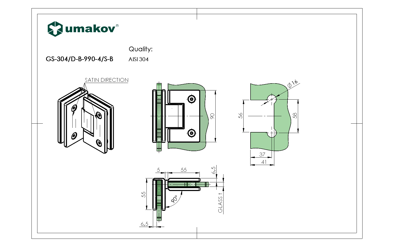 Materiál: Nerez AISI 304, Povrchová úprava: Brus, Glass t: 8-10, Výplň: Sklo, Gmax(kg)/2pcs: 45, Kotvení: Na sklo, Funkce samozavírání: +-15°, Funkce stop: +-90°/0°, h: 90, b: 55, Otvor ve skle: Ano