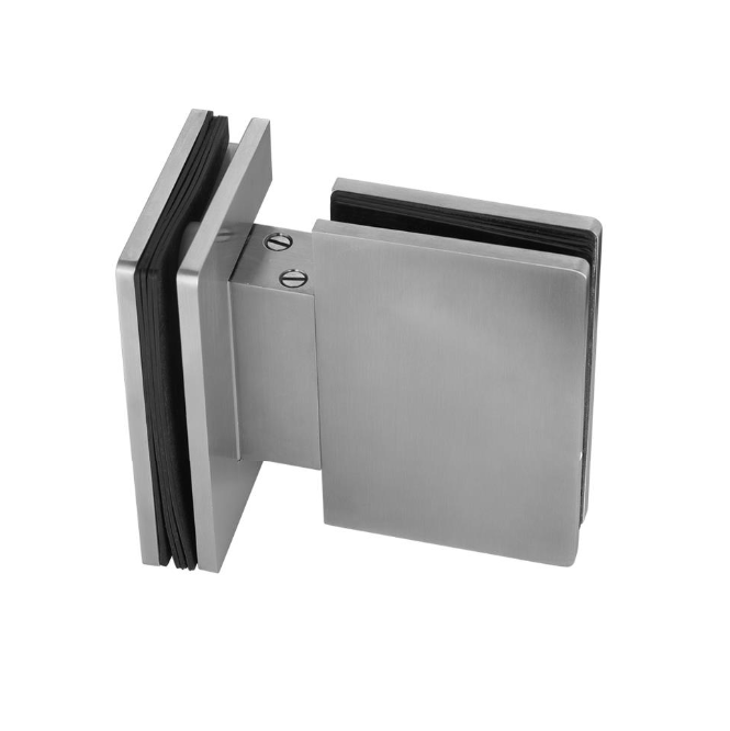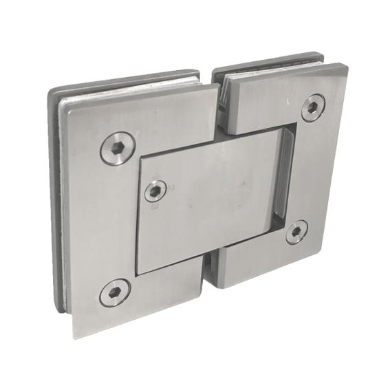 Materiál: Nerez AISI 304, Povrchová úprava: Brus, Glass t: 8-12, Výplň: Sklo, Gmax(kg)/2pcs: 50, Kotvení: Na sklo, Funkce samozavírání: Ano, Funkce stop: +-90°/0°, Otvor ve skle: Ano