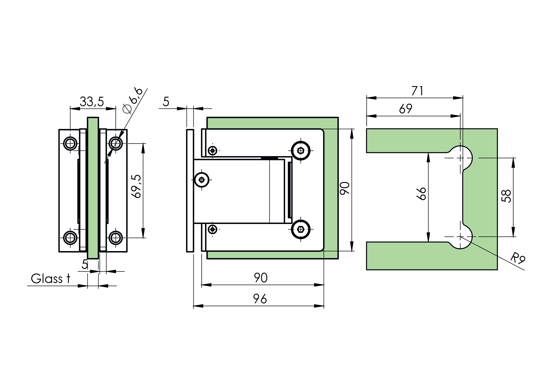 Materiál: Nerez AISI 304, Povrchová úprava: Brus, Glass t: 8-12, Výplň: Sklo, Gmax(kg)/2pcs: 50, Kotvení: Na stěnu, Funkce samozavírání: Ano, Funkce stop: +-90°/0°, Otvor ve skle: Ano