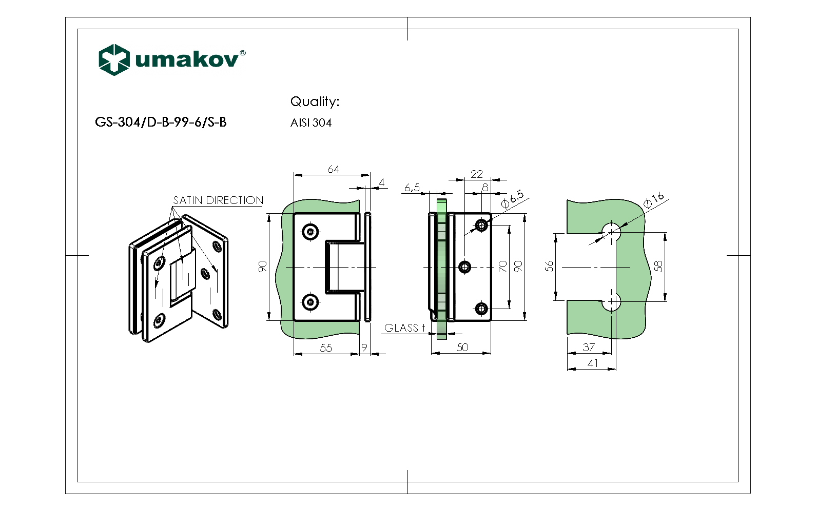 Materiál: Nerez AISI 304, Povrchová úprava: Brus, Glass t: 8, 10, Výplň: Sklo, Gmax(kg)/2pcs: 45, Kotvení: Na stěnu, Funkce samozavírání: +-15°, Funkce stop: +-90°/0°, Otvor ve skle: Ano