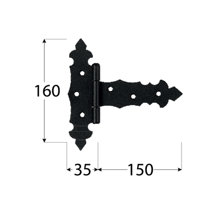 Výška - 150mm, šířka pevné části - 35mm, celková šířka - 80mm, tloušťka plechu - 2,0mm, povrchová úprava - černá hladká barva.